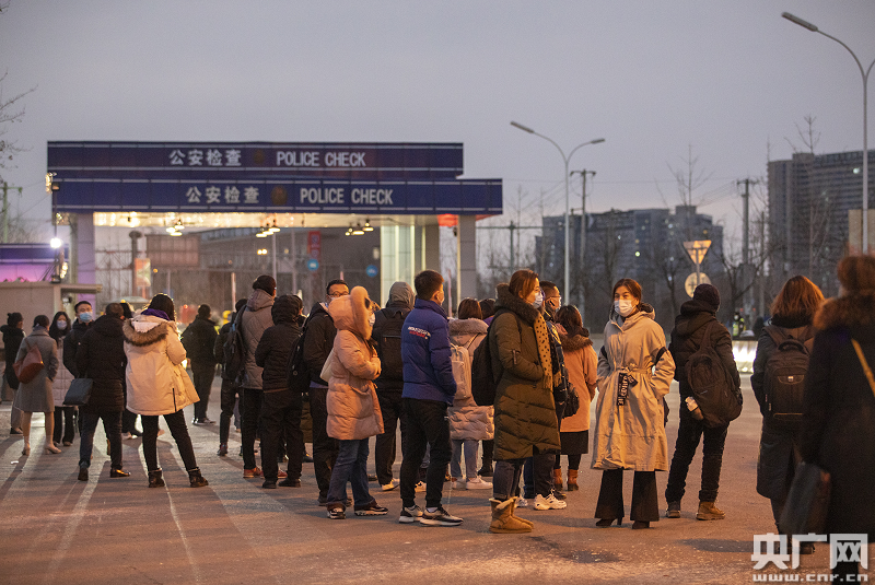 許多上班族在白廟檢查站附近等待網(wǎng)約車(chē)(央廣網(wǎng)記者 張佳琪 攝)