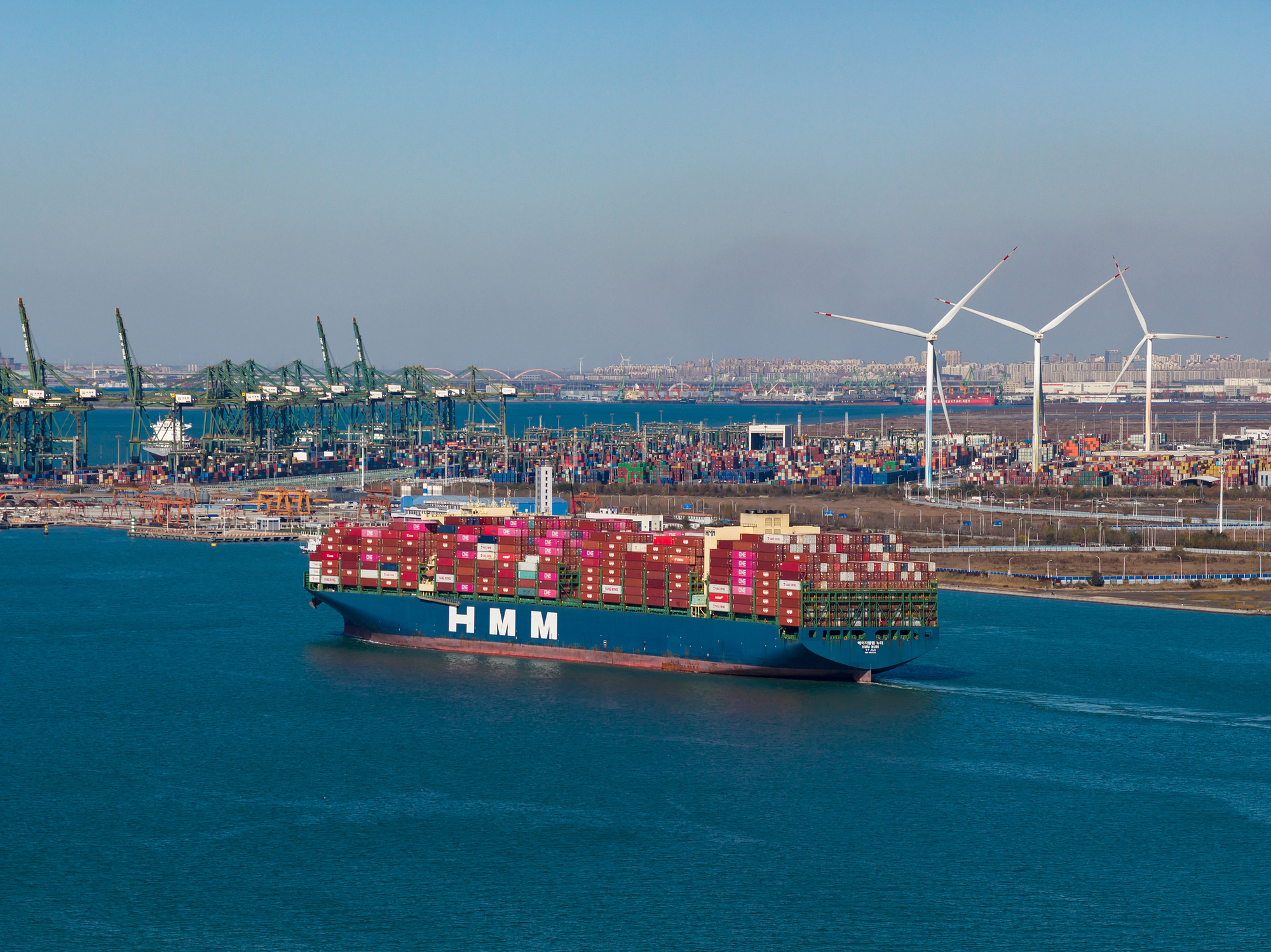 大型集裝箱船靠泊天津港(圖片來源:視覺中國)
