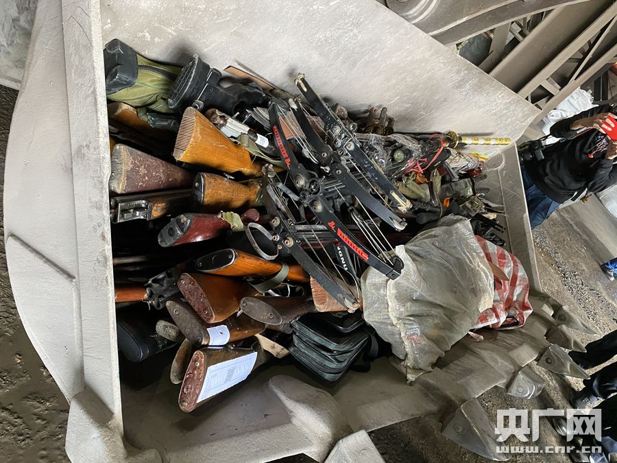弓弩等非法器具也一并銷毀(央廣網(wǎng)記者 謝元森 攝)