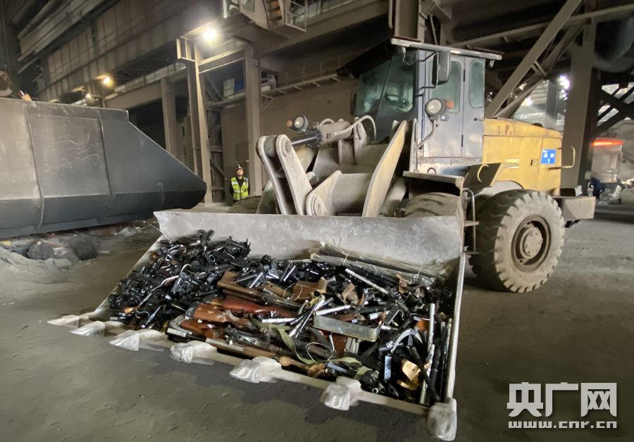 非法槍爆物品即將投入熔爐銷毀(央廣網(wǎng)記者 謝元森 攝)
