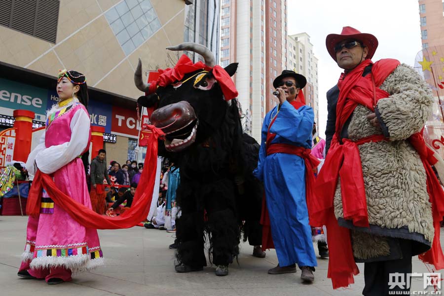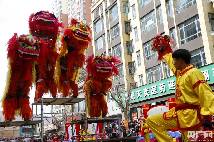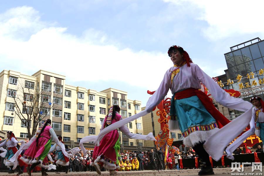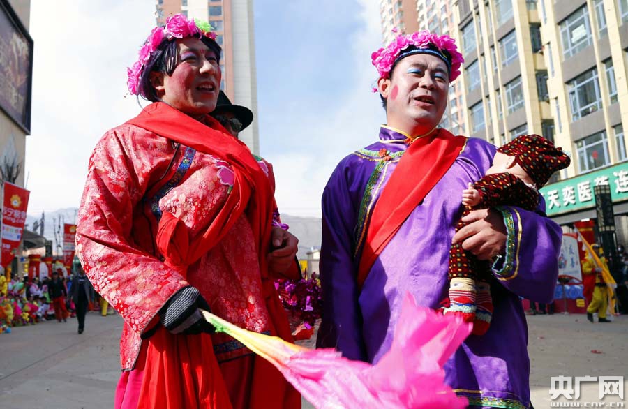 青海西寧市大通縣2018年社火進城展演 央廣網西寧3月1日消息(記者張雷)鑼鼓喧天頌盛世,歡歌笑語鬧新春。昨天(2月28日)上午,青海省西寧市大通回族土族自治縣長寧村鮑東社火隊、景陽蘇家堡社火隊先后在縣城天麒花兒步行街廣場進行社火展演,古裝扮相、儺戲表演、傳統(tǒng)社火與漢族、回族、土族、藏族多民族歌舞表演融為一體,儼然一出歷史古裝大戲、民族歌舞大薈萃,為市民和游客送上一道道豐富的文化大餐,帶來無限歡樂。 -