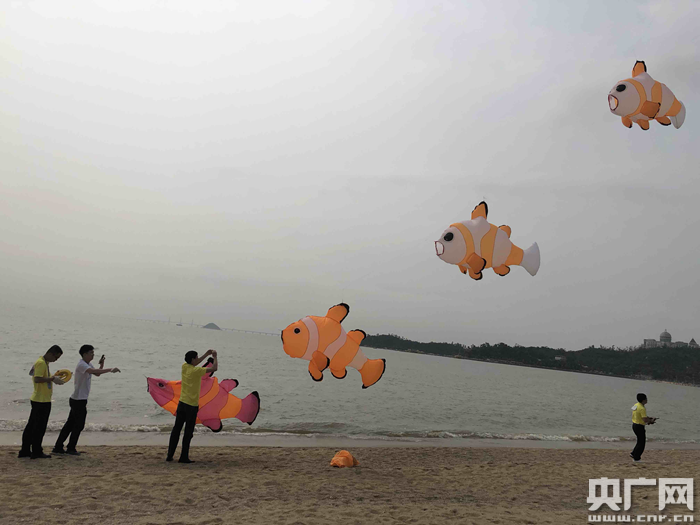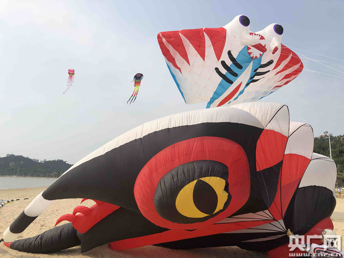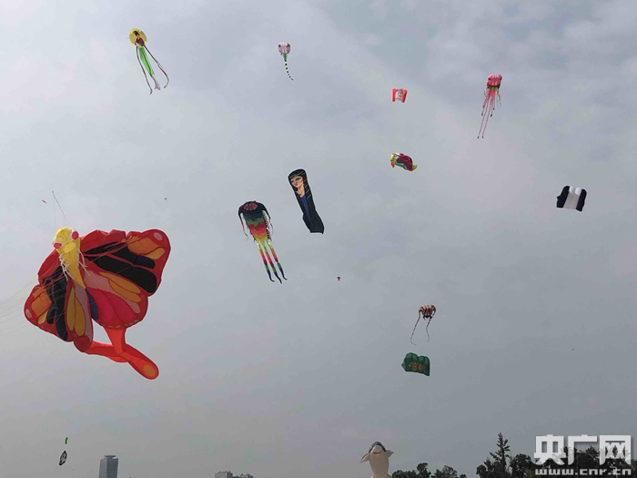 各種各樣的風(fēng)箏在珠海香爐灣上演“空中芭蕾”(央廣網(wǎng)記者 何偉奇 攝)