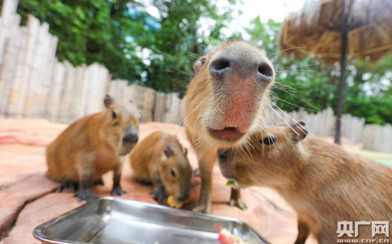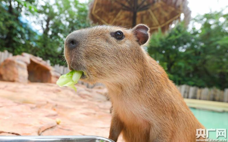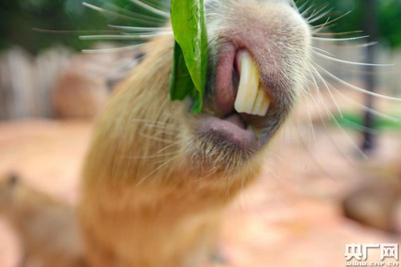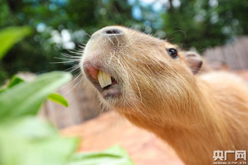 據(jù)介紹,水豚是“世界上最大的嚙齒動(dòng)物”,成年體重最大可達(dá)132斤,身長可超過134cm,因此總是被戲稱為世界上最大的“老鼠”。水豚憨態(tài)可掬,最常見的狀態(tài)就是露出四只大板牙不停吃吃吃,很是魔性,被封為新一代“網(wǎng)紅”。