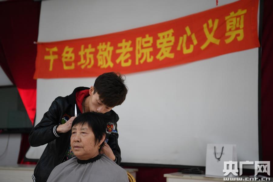 給老人理發(fā)(央廣網(wǎng)發(fā) 史書攝) 在綠園區(qū)溫馨養(yǎng)老院內(nèi),兒媳弓傳美正推著95歲的父親在陽光房里曬太陽。從2016年來到敬老院,老人每個月只需要繳納床位費用的一半,就可以在這里安度晚年。兒媳弓傳美說,現(xiàn)在一個月省一半,一千塊錢,在以前家屬都得給他填補點,這不夠啊,歲數(shù)大了有個病啥的,國家給報銷這部分就足夠了。 -