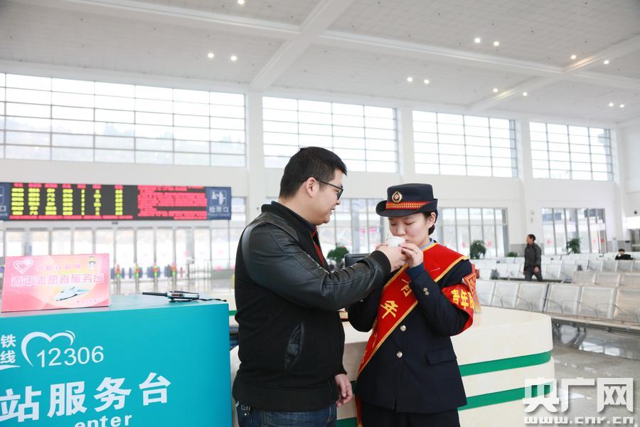 春運(yùn)路上的情人節(jié)(李勇 程禮松 攝) 央廣網(wǎng)重慶2月14日消息(記者劉湛 通訊員李勇 程禮松)正月十七,恰逢情人節(jié),處處都彌漫著甜蜜的氛圍,春運(yùn)最后一輪客流高峰的持續(xù)卻阻隔了不少鐵路職工在今天相遇。但他們依然通過(guò)手機(jī)、快遞傳情或準(zhǔn)備特別禮物,演繹了各種驚喜,將浪漫進(jìn)行到底,化作奮戰(zhàn)春運(yùn)的無(wú)盡動(dòng)力。管轄襄渝、蘭渝、高南、滬蓉線上12個(gè)客運(yùn)辦理站的重慶北車務(wù)段一線客運(yùn)職工大多是近3年分配而來(lái)的青工,他們或在熱戀中,或是新婚燕爾…… 愛(ài)灑老區(qū)春運(yùn)路 “你看你都瘦了一圈了,一定要按時(shí)吃飯,有空了就多休息休息!2月14日,成都鐵路局重慶北車務(wù)段南部站售票廳里,客運(yùn)主任李青的愛(ài)人郭航志為她送來(lái)了情人節(jié)禮物,一盒新鮮的草莓和一支玫瑰花。 和李青一樣,郭航志也是一名鐵路客運(yùn)工作者,他在與李青相鄰的南充北站擔(dān)任客運(yùn)值班員。2012年,郭航志與剛畢業(yè)入路不久的李青相識(shí)在“三江明珠”合川站。2014年,二人曾相約廣安南站獻(xiàn)身“小平故里”高南線開(kāi)通初期的建設(shè),并在那里許下誓言結(jié)為連理。2015年,小夫妻又共同踏上了精準(zhǔn)扶貧線蘭渝鐵路的墾荒征程。 四年多的歷練,李青已經(jīng)從青澀的小女生成長(zhǎng)為了南部站客運(yùn)主任,郭航志也不甘落后擔(dān)當(dāng)起了南充北站客運(yùn)值班員。婚后,二人輾轉(zhuǎn)高南線、蘭渝線,一心撲在新線建設(shè)和客運(yùn)工作上。結(jié)婚三年來(lái),二人的婚禮一推再推,裝好的新房二人都沒(méi)有一道去看過(guò)。 “明天,我準(zhǔn)備回趟老家,把我媽接來(lái),一來(lái)她可以先把新房子收拾收拾,二來(lái)我媽身體不好,離近點(diǎn)也好有個(gè)照應(yīng)。今年,無(wú)論如何都要把我們的婚禮辦了。一直這么虧欠你,我的心里很不好受!”郭航志看著略顯單薄的李青說(shuō)。 緣起鐵路情更濃 “起初我們都不認(rèn)識(shí)對(duì)方,是2014年在一次團(tuán)委組織的聯(lián)誼活動(dòng)上認(rèn)識(shí)的,我們都來(lái)自黑龍江鶴崗,他人很好,誠(chéng)實(shí)、可靠、有擔(dān)當(dāng)、責(zé)任心強(qiáng)……”手里拿著自己最愛(ài)吃的巧克力,馮麗文談起自己和丈夫的相識(shí)、相知、相戀過(guò)程,一臉幸福。馮麗文口中的“他”正是自己的丈夫趙陽(yáng),兩人均為成都鐵路局重慶北車務(wù)段潼南車站職工,馮麗文是客運(yùn)員,趙陽(yáng)擔(dān)任助理值班員。 緣起鐵路。原來(lái),馮麗文和趙陽(yáng)的家鄉(xiāng)都在千里之外的黑龍江省鶴崗市,且只有一街之隔,但兩人起初并不認(rèn)識(shí),通過(guò)一次聯(lián)誼活動(dòng)認(rèn)識(shí)之后兩人的感情“一發(fā)不可收拾”。從鶴崗到潼南,從鄰居變同事,工作上互相幫助,生活中彼此關(guān)心,一個(gè)溫暖的眼神,一句貼心的問(wèn)候,這一切讓身在異鄉(xiāng)的兩個(gè)人漸漸篤定對(duì)方就是彼此心中的那個(gè)人。 奮戰(zhàn)春運(yùn)。2015年9月,馮麗文和趙陽(yáng)為他們的愛(ài)情烙下了鮮紅的印章、領(lǐng)證結(jié)婚。今年是二人婚后的第二個(gè)春運(yùn),但他們還是與去年一樣,放棄了回家,選擇和車站同事們一起堅(jiān)守春運(yùn)。由于所在的崗位不同且都是倒班制,雖然同在一個(gè)車站,但二人卻是聚少離多,站臺(tái)、食堂、樓道便是他們“偶遇”的最佳地方。“今年春運(yùn)我是‘幸運(yùn)’的,因?yàn)榇竽耆臅r(shí)候我們兩是一起過(guò)的,我們一起吃了自己做的年夜飯,還一起給家里的爸媽視頻拜年了呢!”問(wèn)起年三十怎么過(guò)的,馮麗文對(duì)記者說(shuō)到。 2月14日,春運(yùn)第33天,趙陽(yáng)當(dāng)上夜班,馮麗文輪休,整天忙于客運(yùn)工作的馮麗文早就忘了這是個(gè)情人節(jié),但是細(xì)心的趙陽(yáng)卻一直記得,這是兩人在一起“過(guò)”的第一個(gè)情人節(jié)。就在趙陽(yáng)準(zhǔn)備出門上班,馮麗文為丈夫整理領(lǐng)帶,準(zhǔn)備出門上班的時(shí)候,趙陽(yáng)一手妻子緊緊抱在懷中,一手從身后拿出早已準(zhǔn)備好的妻子最愛(ài)吃的巧克力,這個(gè)情人節(jié)他們真正過(guò)了。 “雖然她總說(shuō)不怪我,但我也想給她一個(gè)‘情人節(jié)’。雖然我們現(xiàn)在還沒(méi)有自己的房子,但有她在的地方就是家!鄙习嗦飞,趙陽(yáng)邊下樓梯邊告訴記者。
