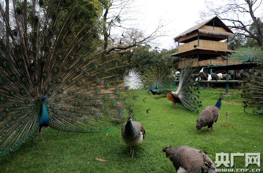 昆明圓通動(dòng)物園櫻花綻放(央廣網(wǎng)發(fā) 李騰飛攝) 像爭(zhēng)春的花兒一樣,昆明圓通動(dòng)物園的孔雀也耐不住寂寞,競(jìng)相展翅開(kāi)屏。伸伸筋骨,揉揉身板,欣欣然,互不相讓?zhuān)急犻_(kāi)了賞春的眼晴。 -