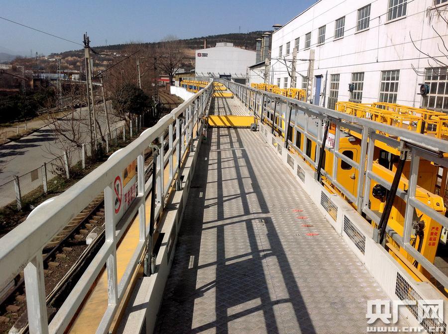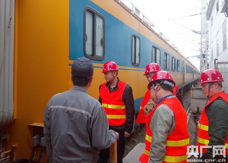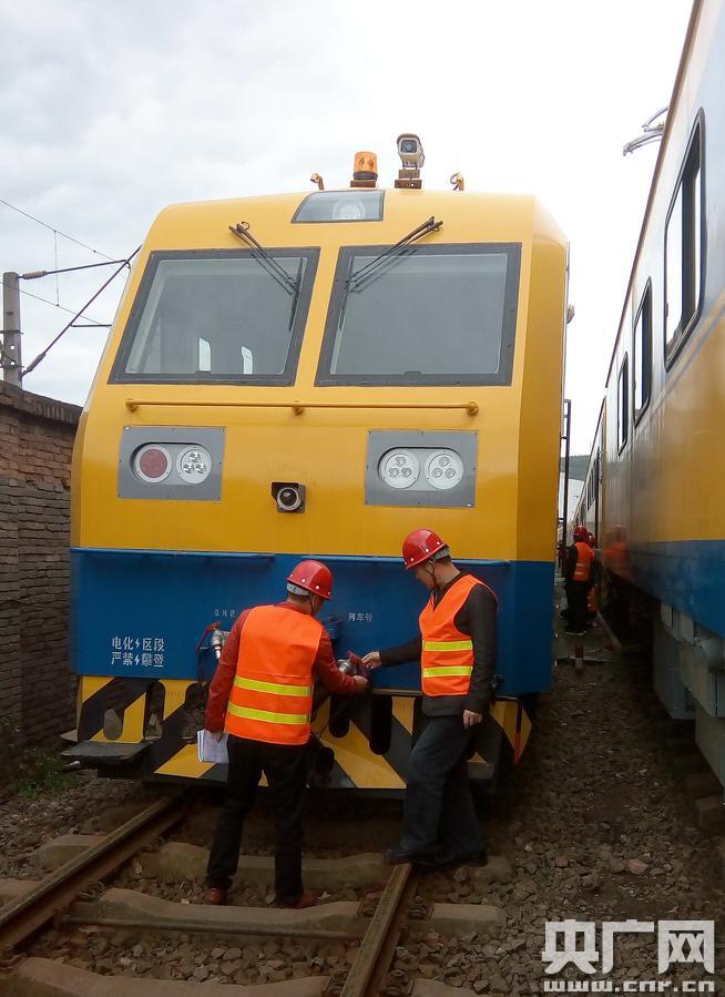 西南地區(qū)首臺(tái)接觸網(wǎng)綜合檢修列配屬成都供電段(何躍光 攝) 央廣網(wǎng)重慶4月22日消息(記者劉湛 通訊員胡志強(qiáng))近日,西南地區(qū)首臺(tái)JJC型接觸網(wǎng)綜合檢修列配屬成都鐵路局成都供電段,標(biāo)志著供電檢修科技裝備保障、修程修制改革創(chuàng)新引領(lǐng)進(jìn)入新時(shí)代。 據(jù)了解,接觸網(wǎng)綜合檢修列由過去的單臺(tái)接觸網(wǎng)作業(yè)車獨(dú)立作業(yè)、編組作業(yè)車分段作業(yè)改為整車推進(jìn)、“大兵團(tuán)”集中作業(yè)模式,實(shí)現(xiàn)了設(shè)備檢查檢測(cè)和維修保養(yǎng)同步,徹底改變了傳統(tǒng)接觸網(wǎng)檢修作業(yè)模式。該檢修列由2臺(tái)接觸網(wǎng)動(dòng)力作業(yè)車和10列接觸網(wǎng)作業(yè)平臺(tái)車混合編組而成,集機(jī)車牽引、料具儲(chǔ)備、職工餐飲、作業(yè)控制、會(huì)議辦公等多項(xiàng)功能于一體,整車可滿足56人宿營(yíng)。 “接觸網(wǎng)綜合檢修列非常適用于西南山區(qū)鐵路接觸網(wǎng)集中修作業(yè),整車除自帶兩臺(tái)大容量發(fā)電機(jī)外,還可以直接從鐵路接觸網(wǎng)上取流,為全車提供照明、作業(yè)和生活用電! 成都供電段設(shè)備科科長(zhǎng)何躍光說。 -