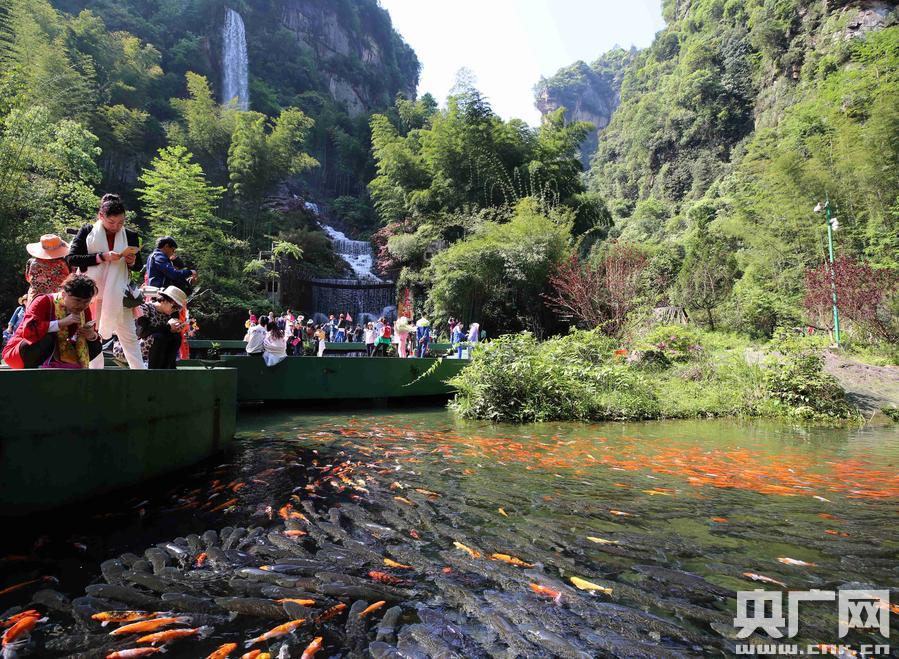 •    吳勇兵攝   央廣網(wǎng)張家界4月30日消息(記者傅蕾 通訊員吳勇兵)4月29日,“五一”小長假第一天,湖南張家界武陵源風(fēng)景區(qū)天高云淡,峰林綠染,溪湖碧清,吸引各地游客前來享受輕松愜意的“五一”假期。