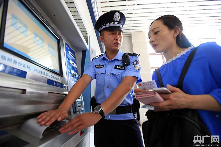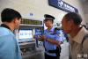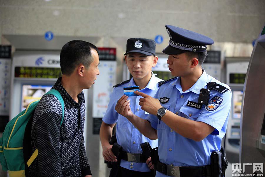 民警在南充火車站向旅客講解自助購票時銀行卡的安全使用方法 -