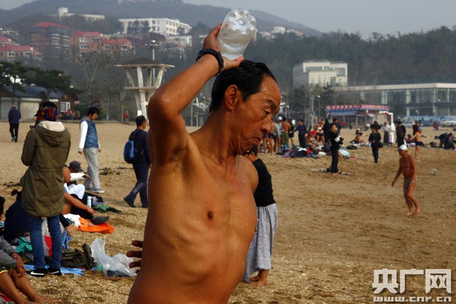冬泳的老人們(央廣網(wǎng)記者賈鐵生 攝) 央廣網(wǎng)大連11月1日消息(記者張四清 賈鐵生)2017年11月1日下午,遼寧省大連市傅家莊海濱浴場里,數(shù)十名大連市冬游協(xié)會的老人在此冬游。大連市冬游協(xié)會秘書長韓俊龍告訴記者,協(xié)會有26支隊(duì)伍,共計(jì)2千多名會員,大家在樂于冬游之時(shí),還經(jīng)常在海邊撿拾垃圾,救護(hù)溺水人員,越來越多的人加入到冬游的隊(duì)伍中。 在冬游的人群中,有兩位80多歲的老人,老人堅(jiān)持冬游已經(jīng)20多年了。老人說,堅(jiān)持冬游自己的感冒少了,心情也愉悅了許多,為兒女和社會減輕負(fù)擔(dān),希望大家通過冬游強(qiáng)身健體,有生之年還能為社會出一份力,為中國夢的早日實(shí)現(xiàn)添磚加瓦。 -