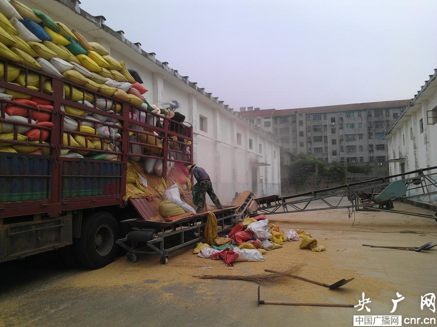 岳陽市嚴(yán)格按照國家最低保護(hù)價132元/百斤的價格敞開收購農(nóng)民余糧,為國家糧食安全和糧農(nóng)增收做出了積極貢獻(xiàn)。 (央廣網(wǎng)記者 張毛清 攝)