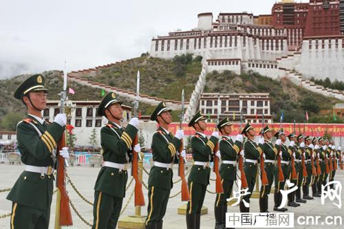 央廣網(wǎng)拉薩10月1日消息(記者羅布次仁) 今天上午,3000多名身著節(jié)日盛裝的西藏各族各界群眾聚集在布達拉宮廣場,舉行升國旗唱國歌儀式慶祝偉大祖國64華誕。