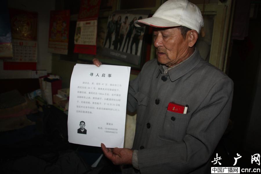 在市民為這份集體記憶擔(dān)心、著急時(shí),譚洪文的養(yǎng)父和姐姐早已奔赴在尋找洪文的路上了。煙臺(tái)、威海,一家人跑遍了大半個(gè)膠東半島。因?yàn)檫@幾天到處奔波尋找,譚洪文76歲的“養(yǎng)父”已經(jīng)滿眼疲憊、焦灼,煙一支接著一支地抽:“這幾天抽得厲害、晚上都起來(lái)抽,總惦記也不知道他上哪去了,怎么樣,咱就不踏實(shí)!弊T洪文的姐姐譚春玲:“俺爸啊,晚上小文不來(lái)家,從來(lái)睡不著!
