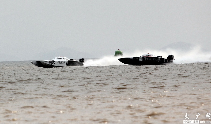 央廣網(wǎng)寧波11月9日消息(記者杜金明 通訊員金旭孟 陳未鳴)平均時(shí)速180~190公里,最高時(shí)速可達(dá)250公里。世界最高級(jí)別水上摩托艇盛會(huì)——2013世界X-CAT摩托艇錦標(biāo)賽,昨天(8日)下午在位于寧波北侖梅山灣展開角逐。來自阿聯(lián)酋、卡塔爾、意大利等8個(gè)國(guó)家的13支代表隊(duì)將展開為期3天的激烈競(jìng)速。