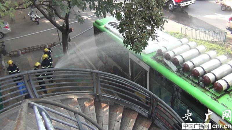事故發(fā)生在嘉禾路馬垅天橋下,8時14分,中隊官兵到達現(xiàn)場后,看到公交車停在路邊,車頂上的天然氣發(fā)出“嘶嘶”泄漏聲,現(xiàn)場充斥著濃重的煤氣味。司機反映,996路公交車是天然氣動力車,車頂上有7個氣瓶裝有200公斤天然氣的氣瓶,其中一個氣瓶發(fā)生泄漏。