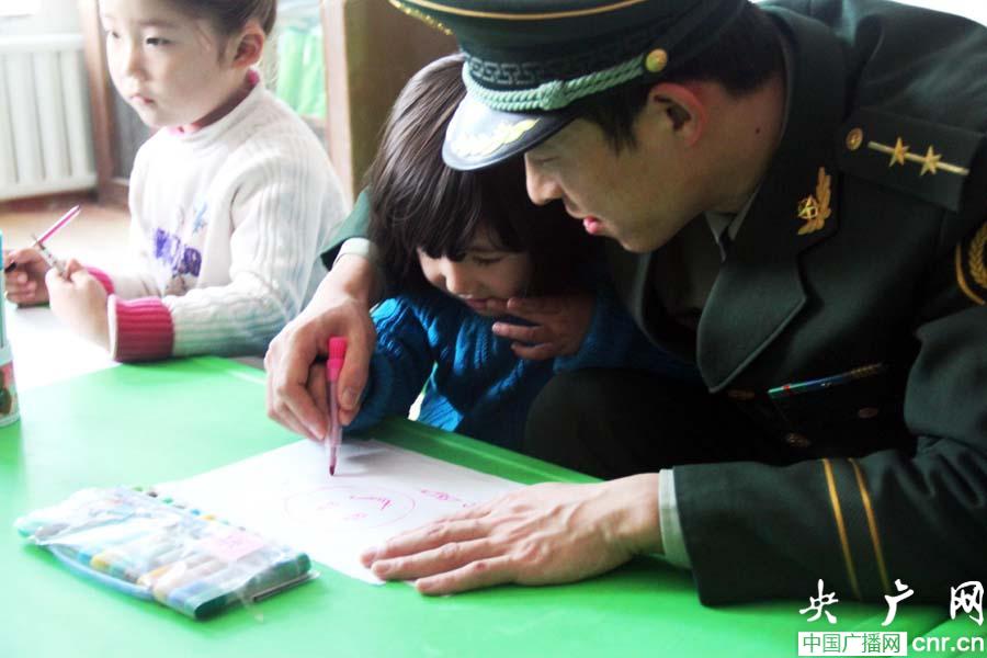 央廣網(wǎng)阿勒泰11月20日消息(記者張雷、通訊員王友波)在“世界問候日”來臨之際,武警新疆阿勒泰邊防支隊(duì)恰勒什海邊防派出所官兵們帶上水彩蠟筆、畫紙等工具,來到寄宿制學(xué)校與幼兒園的小朋友們共同度過這具有紀(jì)念意義的節(jié)日。