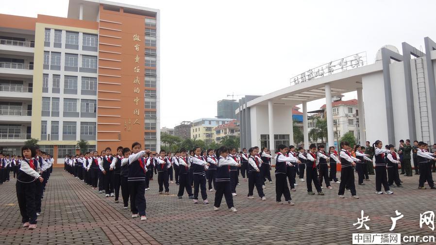 南寧市仙葫學(xué)校學(xué)生在做消防廣播操(央廣網(wǎng)記者 鄧君洋 攝)