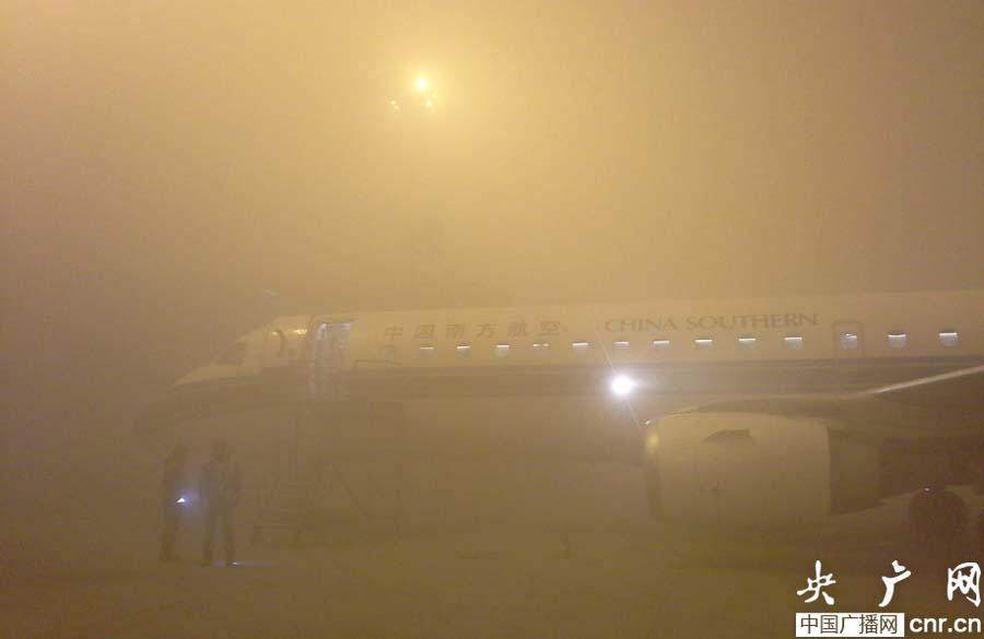 烏魯木齊機場大霧,飛機無法正常起飛(任春山攝)(央廣網(wǎng)記者 張雷 攝)
