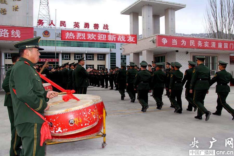 央廣網(wǎng)塔什庫(kù)爾干12月9日消息(記者張雷 通訊員唐乾清)昨天下午,位于帕米爾高原上的新疆紅其拉甫邊檢站營(yíng)區(qū)內(nèi)鑼鼓喧天,全體官兵整齊列隊(duì),剛剛結(jié)束新訓(xùn)的12名新兵邁著整齊的步伐,喊著響亮的番號(hào)走進(jìn)營(yíng)區(qū),列隊(duì)等候的官兵用最熱烈的掌聲歡迎新戰(zhàn)友的到來(lái)。