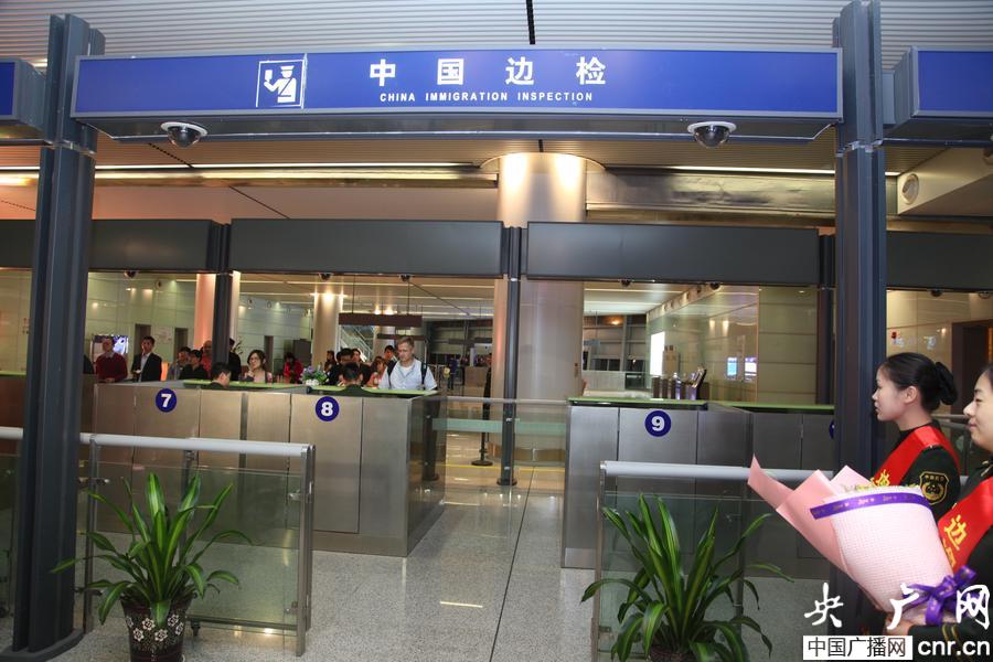 第100萬(wàn)個(gè)出入境旅客在辦理入境邊防檢查手續(xù)(央廣網(wǎng)記者 鄧文輝 攝)