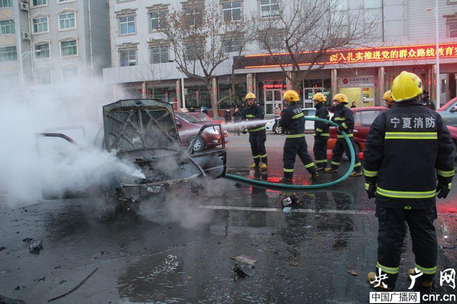 央廣網(wǎng)銀川12月12日消息(記者許新霞 通訊員丁宜師)今天07時28分,固原市原州區(qū)中山北路六小門前一輛改裝用氣甲醇轎車突然起火,火勢猛烈,并伴有大量濃煙。固原消防特勤中隊接到報警后,迅速出動1車8人趕往現(xiàn)場救援。
