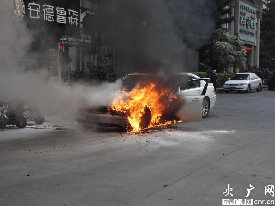 鬧市區(qū)豪車行駛途中突然自燃 車主損失慘重 通訊員黃綠榮 攝