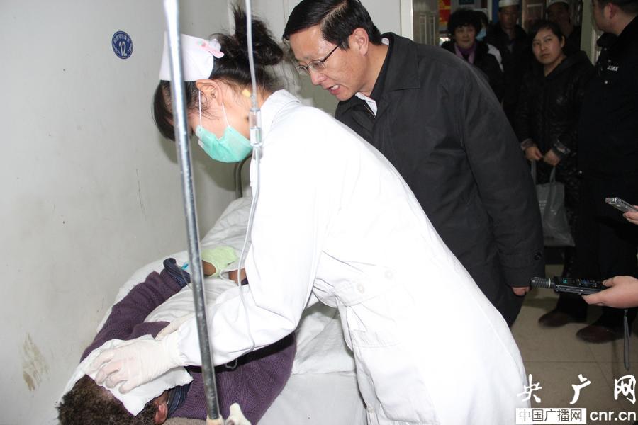 西寧市市長王予波在醫(yī)院探望傷員(央廣網(wǎng)記者 葛修遠(yuǎn) 攝)