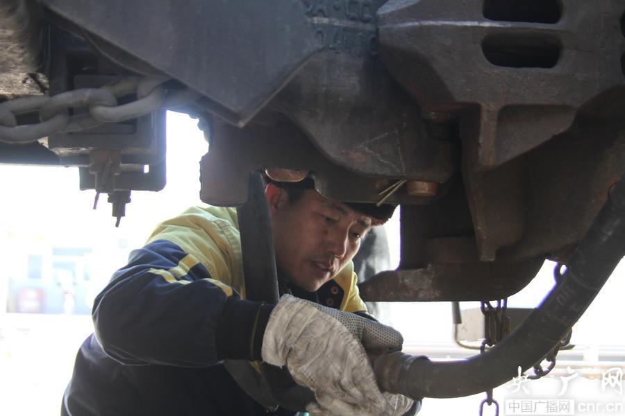 內(nèi)蒙古地域遼闊,草原上風(fēng)沙特別大,馬師傅說:“沙塵暴刮的時(shí)候睜不開眼,呼呼的,就跟海嘯的聲音似的,火車哐啷一聲,哄就開過來了,一節(jié)車廂的大車輪就有兩噸半,所以我們這行人耳朵比平常人背!”