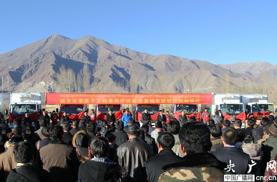 菜籃子工程惠民平價(jià)蔬菜直銷車進(jìn)社區(qū)活動(dòng)昨日啟動(dòng)(央廣網(wǎng)記者 普布次仁 攝)
