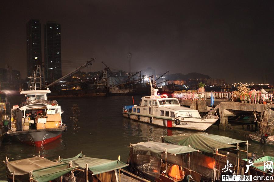 凌晨的濠江江面泊船密布,“花婆船”和送人艇只能在這些停泊在江面的船舶中穿行,不時還有其他船只穿行其間。從凌晨4點多, 7名海事執(zhí)法人員和一艘海巡船就已抵達(dá)灣仔碼頭,他們協(xié)助“花婆船”的裝載與航行,叮囑船上人員穿著救生衣、注意避讓,要求船員嚴(yán)守規(guī)定,杜絕超載航行、人貨混載、船首超越航行等違規(guī)行為。在海事執(zhí)法人員的指揮下,濠江水上交通依然保持安全有序。