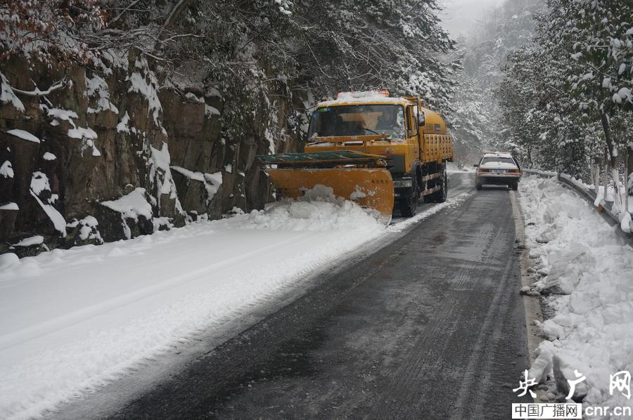 浙江淳安山區(qū)公路路面積雪超10厘米 20多臺除雪設(shè)備緊急出動(央廣網(wǎng)發(fā) 童可清攝)