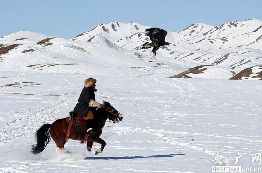 央廣網(wǎng)青河2月17日消息(記者張雷 青河臺(tái)記者拉扎提 葉斯波力)新疆阿勒泰地區(qū)青河縣昨天舉辦第二屆“獵鷹比賽”,40多名身騎駿馬、手臂上高舉獵鷹的馴鷹人和近萬名觀眾冒著零下30度的嚴(yán)寒參加、觀賞這場(chǎng)別開生面的比賽。