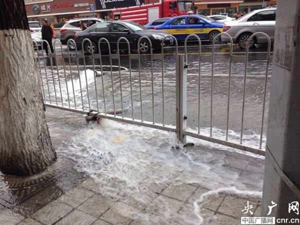 貴陽主城區(qū)發(fā)生地下供水管道爆裂(央廣網(wǎng)記者 陳屹 攝)