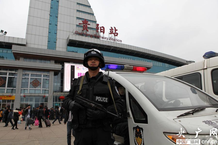 貴鐵警方對貴陽站前廣場實行24小時特警武裝巡邏(央廣網(wǎng)發(fā) 劉念陸 陳長青 攝)
