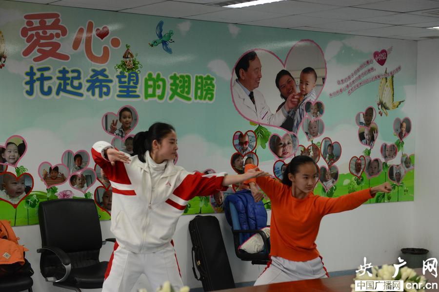 人大附中學(xué)生為患兒表演武術(shù)(央廣網(wǎng)發(fā) 吉昱攝)
