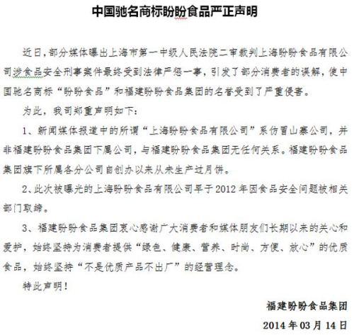 上海嚴(yán)懲涉食品安全刑事犯罪 上海“盼盼公司”被判罰100萬