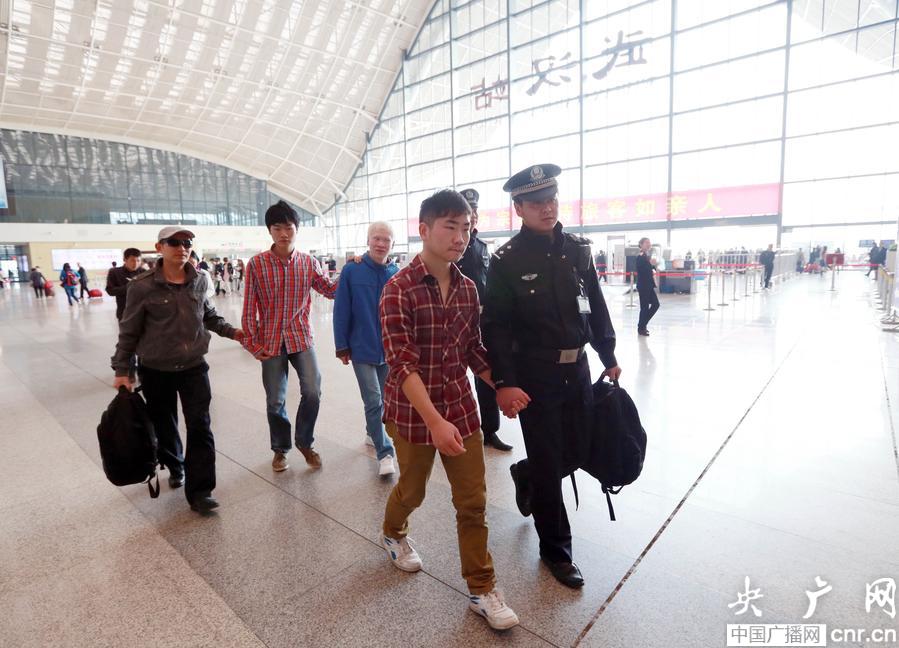 武漢鐵警:為 “趕考盲人” 暢通“光明大道”(央廣網(wǎng)記者 張毛清 攝)