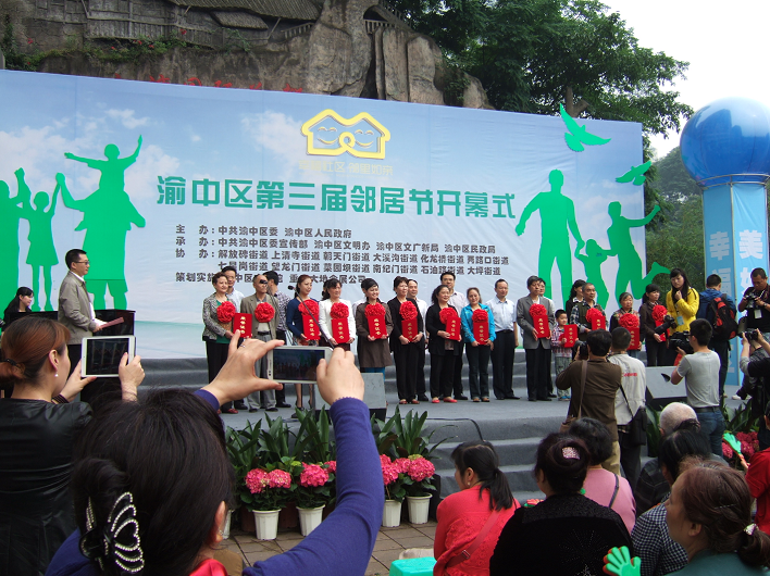 渝中區(qū)“鄰居節(jié)”活動(dòng)自2012年5月20日成功舉辦以來,今年已是第三屆,活動(dòng)很好的促進(jìn)了社區(qū)的和諧發(fā)展、融洽了鄰里關(guān)系、提升了市民幸福指數(shù),為此每年舉辦一屆的“鄰居節(jié)”也成為了真正屬于廣大市民朋友的節(jié)日。三年來,渝中區(qū)各街道、各社區(qū)更是涌現(xiàn)出了一大批“好鄰居”典型。本屆鄰居節(jié),通過居民推薦、社區(qū)評(píng)選公示、街道統(tǒng)籌把關(guān),共評(píng)選出78對(duì)“好鄰居”家庭,在今天上午舉行的開幕上,他們獲得了“好鄰居”家庭榮譽(yù)證書。