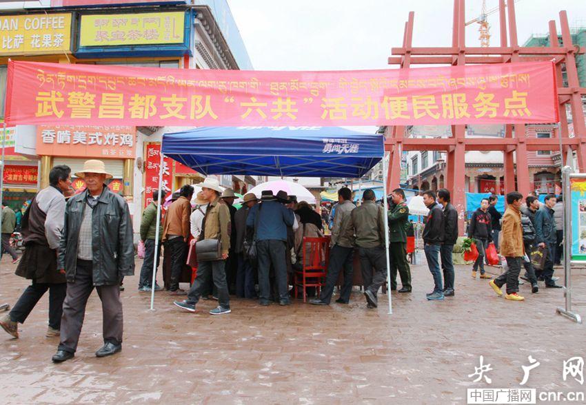 支隊(duì)官兵們?cè)O(shè)立便民服務(wù)點(diǎn)服務(wù)群眾(央廣網(wǎng)記者 普布次仁 攝)