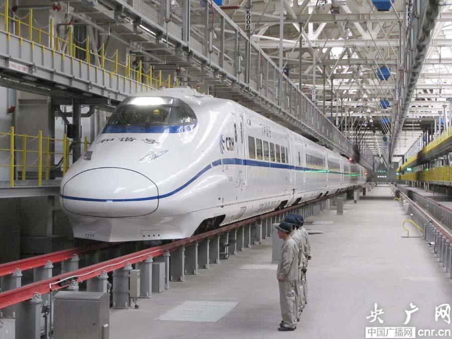 動(dòng)檢車即將從烏魯木齊動(dòng)車運(yùn)用所駛出(央廣網(wǎng)記者 吳卓勝 攝)