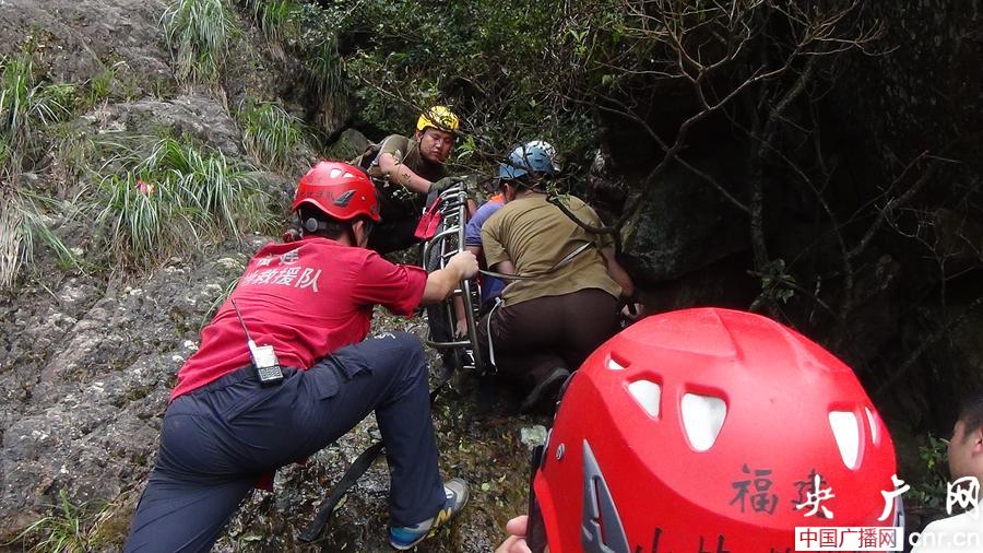 福州兩男子為抓“石鱗”被困深山11小時(shí) 消防和山地救援聯(lián)合搜救(黃綠榮 攝)