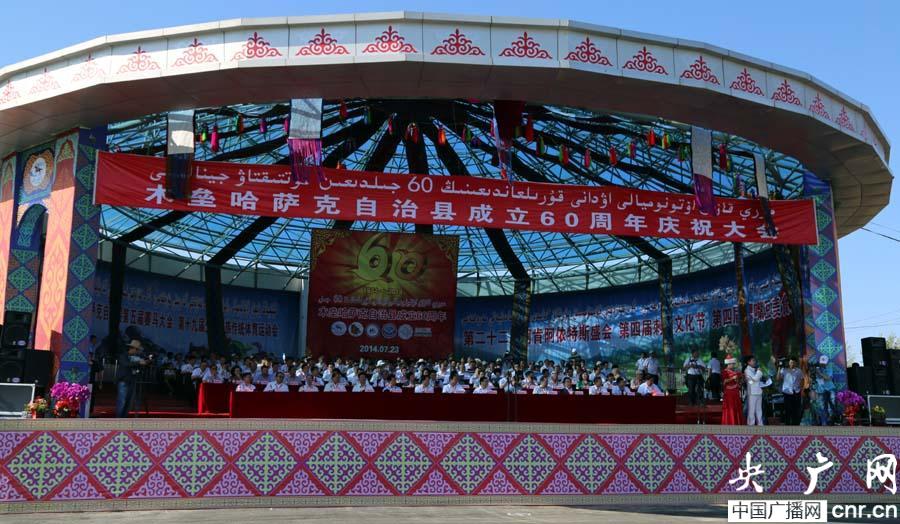 新疆木壘哈薩克自治縣成立60周年慶祝大會現(xiàn)場(央廣網(wǎng)記者 張雷 攝)