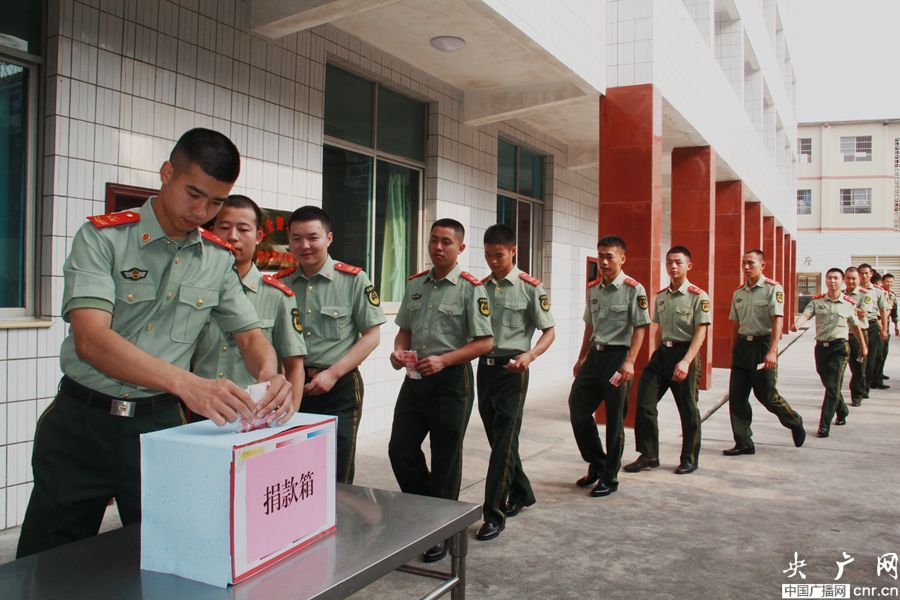 央廣網(wǎng)貴陽消息(記者周強 通訊員張海濤 鄧剛)今天(8月5日),武警貴州總隊黔南支隊警勤中隊組織為云南魯?shù)榈卣鹗転膽?zhàn)友代志大捐款7000余元。