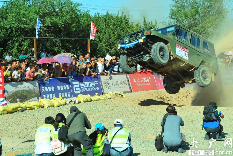 央廣網(wǎng)阜康8月29日消息(記者張雷 阜康臺記者田鋒 王新剛 徐歡)2014年新疆阜康西王母瑤池蟠桃會民族品牌汽車越野場地挑戰(zhàn)賽昨天開戰(zhàn)。這次比賽車手來自全國各地,不僅有全地型車組,還有民族品牌的SUV組。蹺蹺板、V型溝、斜坡路、大駝峰和炮彈坑等驚險刺激的障礙逾越,在考驗參賽車手駕駛技術(shù)和心理素質(zhì)的同時,也給現(xiàn)場觀眾帶來了刺激和震撼。