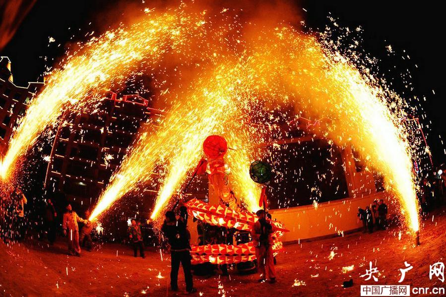 據(jù)悉,臺(tái)江“苗族舞龍噓花”歷史源遠(yuǎn)流長,從唐朝開始,外來文化與當(dāng)?shù)孛缱逦幕嘟Y(jié)合的產(chǎn)物。每年正月初七到了十五,臺(tái)江縣100多個(gè)苗寨農(nóng)民開始扎龍做花歡度春節(jié)。舞龍噓花男女老幼都可舞、可噓、可觀,著實(shí)地體現(xiàn)了苗疆兒女龍騰虎躍的勇敢和智慧,每年都會(huì)吸引來自海內(nèi)外上萬游客前來觀賞。圖為臺(tái)江苗族農(nóng)民在玩耍“苗族舞龍噓花”。