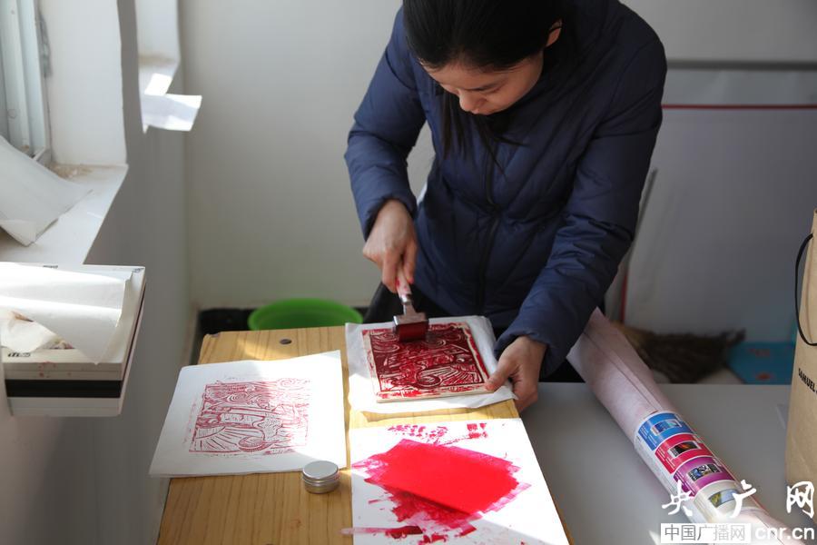 活動(dòng)在北京延慶香營鄉(xiāng)山底下村拉開了序幕,村民早早的就等候在大隊(duì)部了。此次活動(dòng)除了為村民現(xiàn)場(chǎng)寫春聯(lián)外,還現(xiàn)場(chǎng)制作年畫和富有年味的版畫。寫春聯(lián)和制作年畫的都是在各村任職的大學(xué)生村官,他們發(fā)揮自己在書法和繪畫方面的特長,義務(wù)為百姓服務(wù)!斑是頭一次現(xiàn)場(chǎng)看制作年畫,俺得等著拿一張。”村民趙寅恩樂呵呵的說。這邊制作年畫,那邊寫對(duì)聯(lián),滿屋子的歡聲笑語,年味十足。