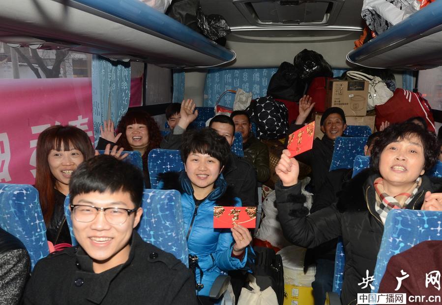 大紅門商戶乘免費大巴千里還鄉(xiāng)過年 楊鐵梅 劉連良攝