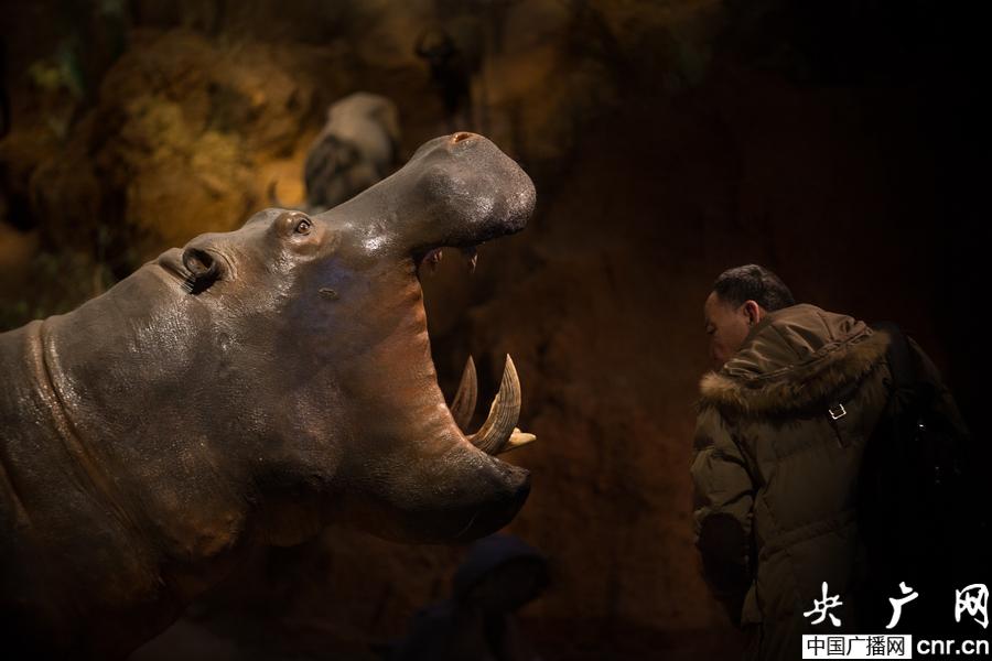 央廣網(wǎng)濟南2月23日消息 (記者柴安東)春節(jié)期間,一位市民正在山東省博物館觀看河馬標(biāo)本。