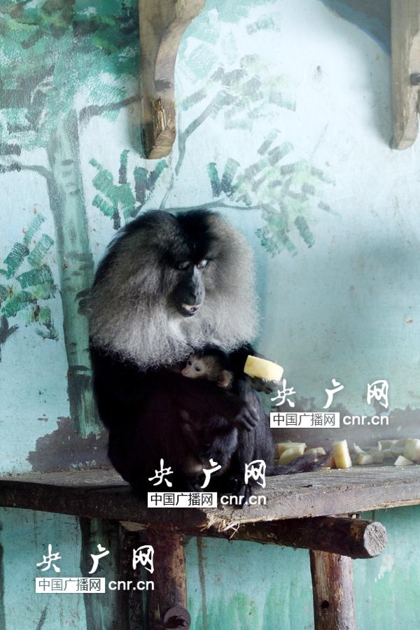 為了給獅尾猴媽媽補(bǔ)充營養(yǎng),從它懷孕期間細(xì)心的飼養(yǎng)員就調(diào)整了飼料配比,加大了大棗和面包蟲的比例,提高蛋白質(zhì)和熱量的攝入,確保了猴寶寶的健康成長。