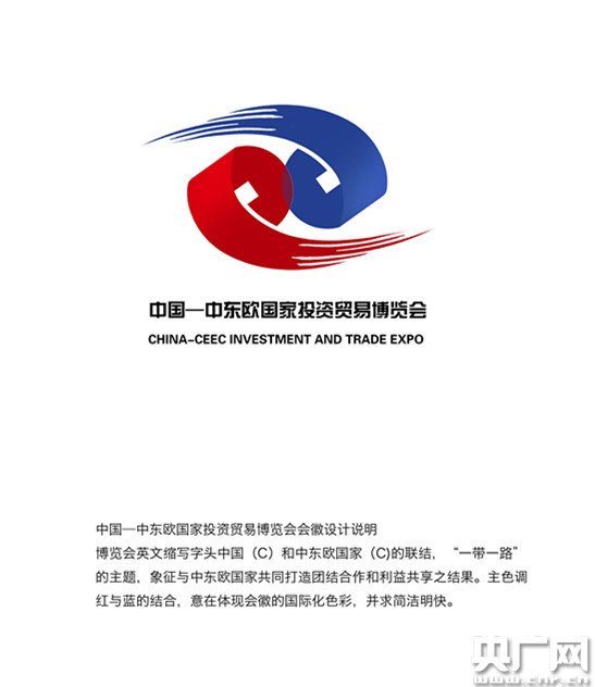 中東歐博覽會會徽為英文縮寫字母中國(C)和中東歐國家(C)的結(jié)合,象征中國與中東歐國家通過合辦投資貿(mào)易博覽會,共同建設(shè)“一帶一路”,追求團(tuán)結(jié)合作和利益共享之成果。主色調(diào)采用紅色和藍(lán)色,頗具國際色彩,并求簡潔明快。